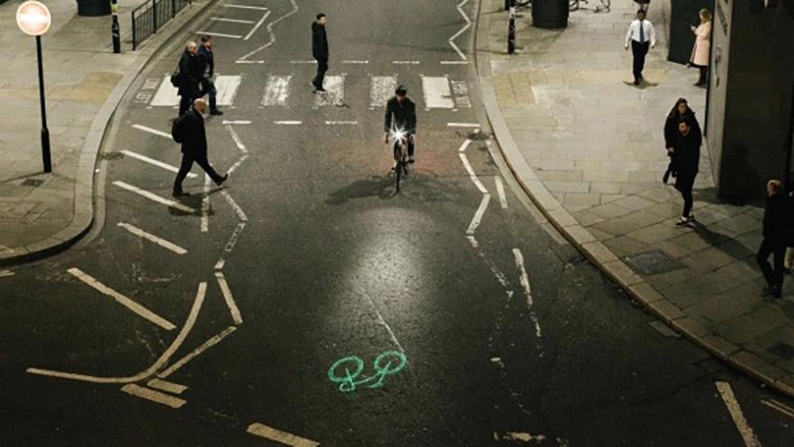 七年前,英國(guó)布萊頓大學(xué)(the University of Brighton)產(chǎn)品設(shè)計(jì)專業(yè)的學(xué)生Emily Brooke在騎車時(shí),被一輛白色小貨車搶道。Brooke發(fā)現(xiàn)司機(jī)看不見(jiàn)自己,于是希望能在更遠(yuǎn)的地方投射出自己的虛擬影像。這一經(jīng)歷啟發(fā)她發(fā)明了一種新型自行車燈。車燈在夜間照路的同時(shí),能在車前6米的人行道上投放出一個(gè)發(fā)光的綠色自行車圖標(biāo),看上去有些像一條臨時(shí)自行車道。